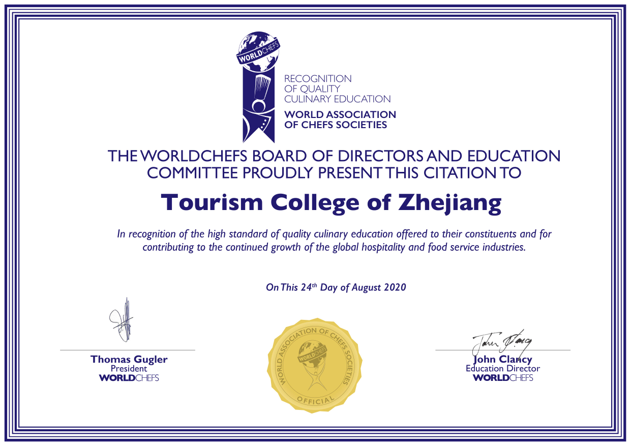 TCZJ annually holds the “International Forum on Sustainable Development of Hospitality Education and Industry”, to discuss the development paths of global tourism education. The Global Travel and Tourism Partnership (GTTP) holds the GTTP Global Tourism Research Competition (China) trials annually. To promote the in-depth exchanges of catering economy and culture between China and Italy,TCZJ establishes the China-Italy Delicacy Silk Road Education Alliance. Costa Crociere,S.p.A. works with TCZJ to train cruise professionals, and co-funded Costa Cruise Training Center (China) in TCZJ.