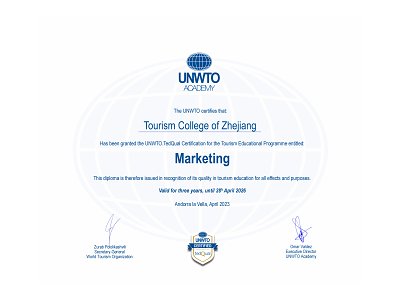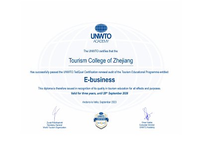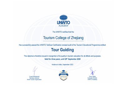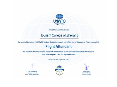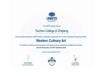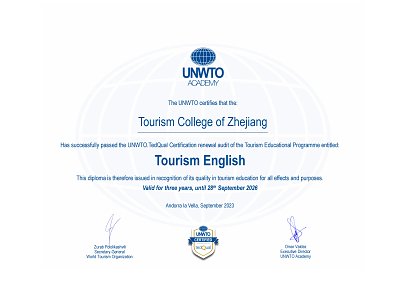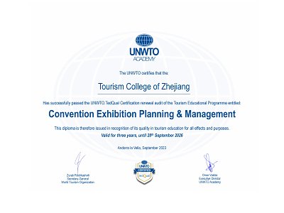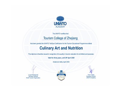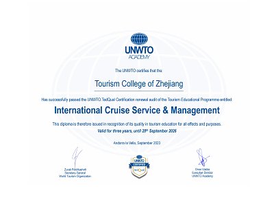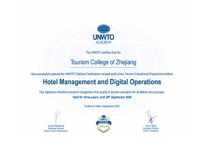 TCZJ offers more than 30 tourism-related majors, including Hotel Management, Tour Guiding, Culinary Arts and Nutrition, and In-flight Service. Among these majors, 11 majors have passed the UNWTO tourism education quality certification.